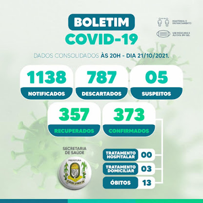 Os dados acima são de hoje (31/10/2021). Você que ainda não tomou a vacina procure uma unidade de saúde do município ... e você que tomou a primeira dose e já passou o dia de tomar a segunda faça o mesmo.